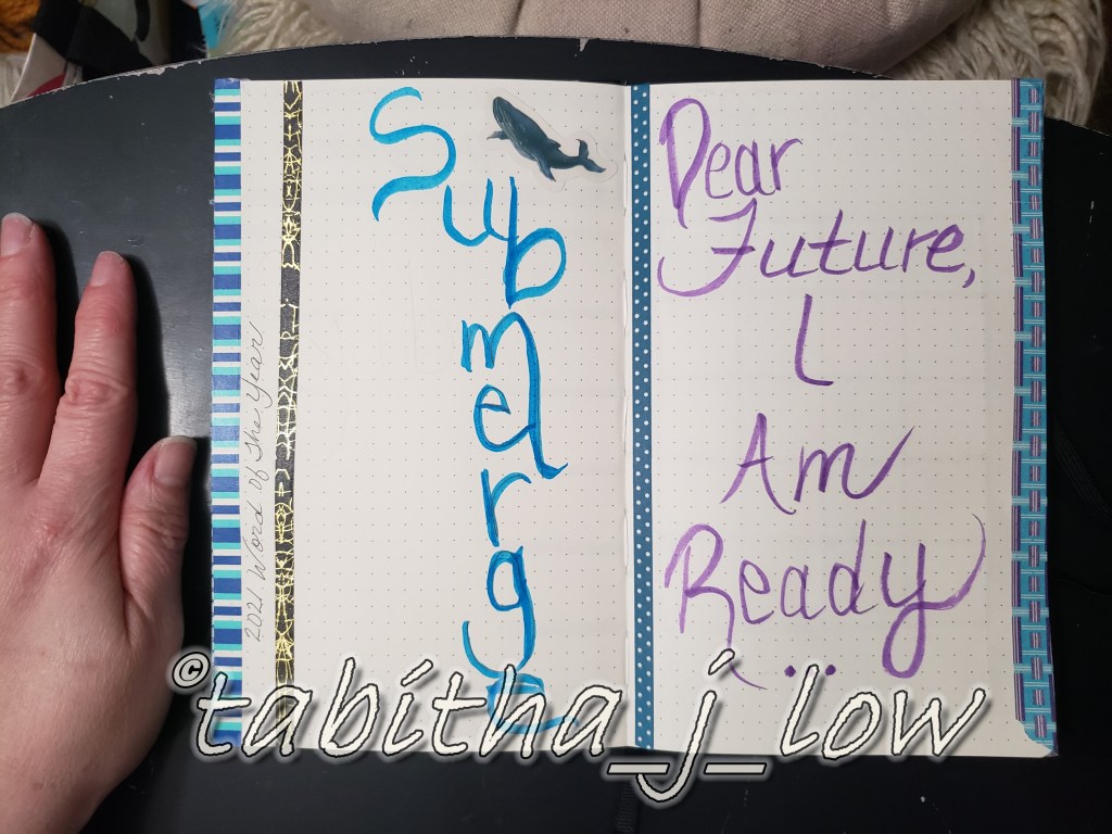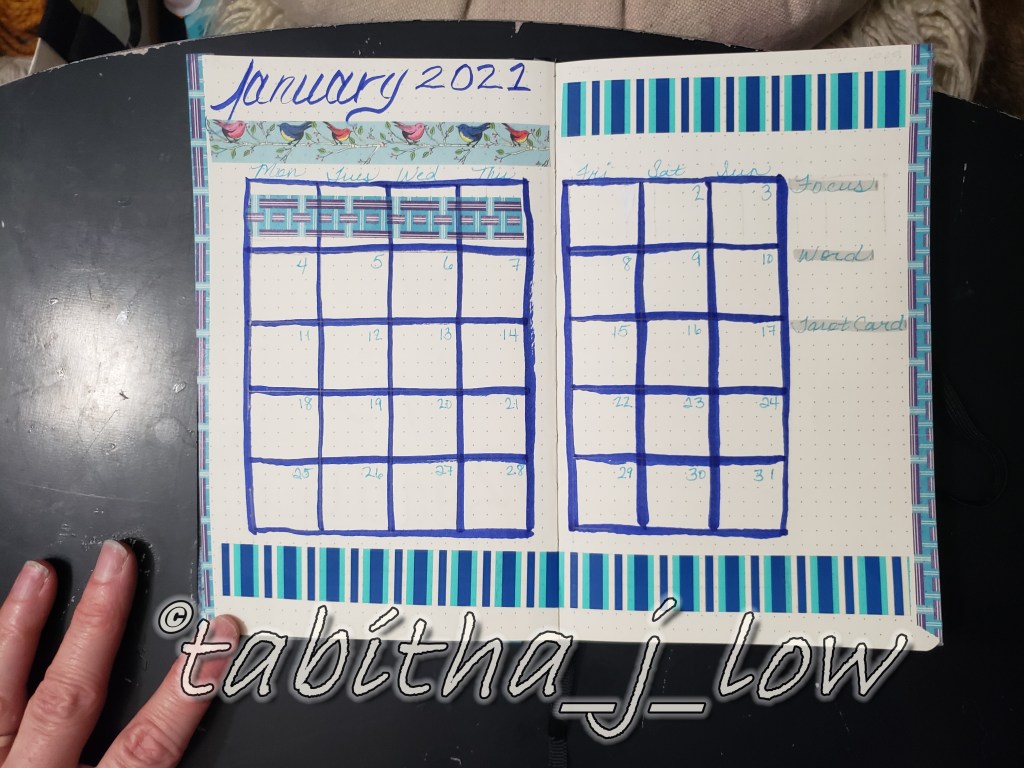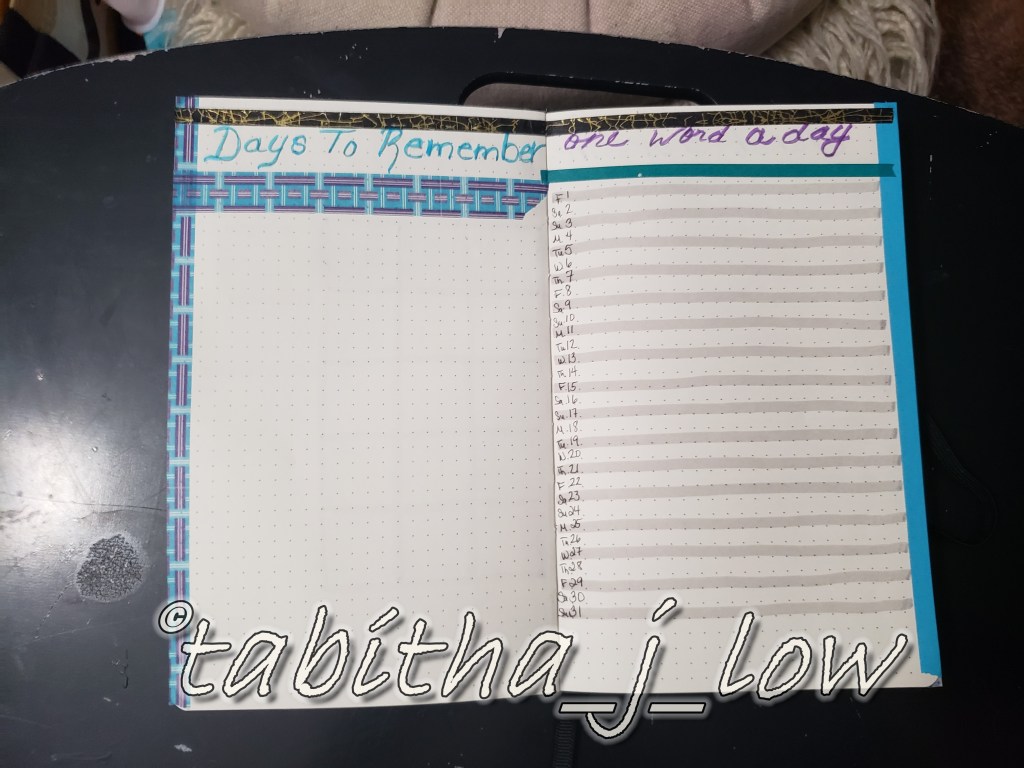 On the right, one word per day. I really love this habit. This may be the last time i draw it out in my bujo though as Passion Planner daily has it already.