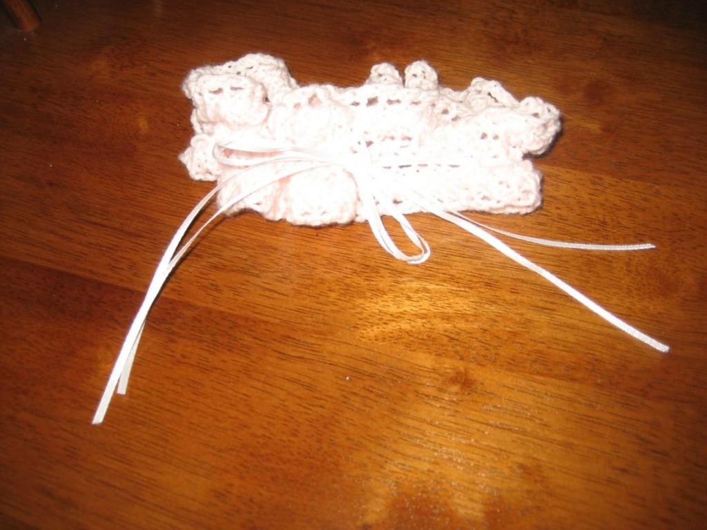 Turn your garter to the right side, with the ends of the ribbon on the right side of your work.