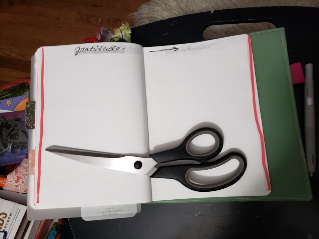 After that, I have four pages set aside for recording gratitude.  In September I only had two pages set aside to do gratitude.  I was thinking I would record one thing per day.  As I sat there thinking about things to write that first month, I found out I had so much more to write down.  Since October I have been using four pages.  I almost tipped in another 2-page card to add more last month.  I decided against it because there were only a few days left to the month.  I am already nearly done with the first two pages of this month’s gratitude…so this month an extra tip-in may be necessary.  It helps me slow down and not take so much for granted—I can appreciate that in and of itself.