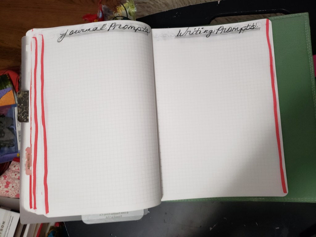 Now, I so wish I could remember where I saw this so I could credit the person I stole this idea from.  Basically, I was falling down the wormhole of YouTube planner videos and one video showed this woman creating a ‘journal prompt’ spread or at least area in her planner…and I loved that idea.  In October, I started to keep a page full of journal prompts and a page full of writing prompts.  For each page, I scour Pinterest for both types of prompts.  Now, if I lack ideas as to what to write about…I have a built-in buffer already in my planner.  It’s terrific.